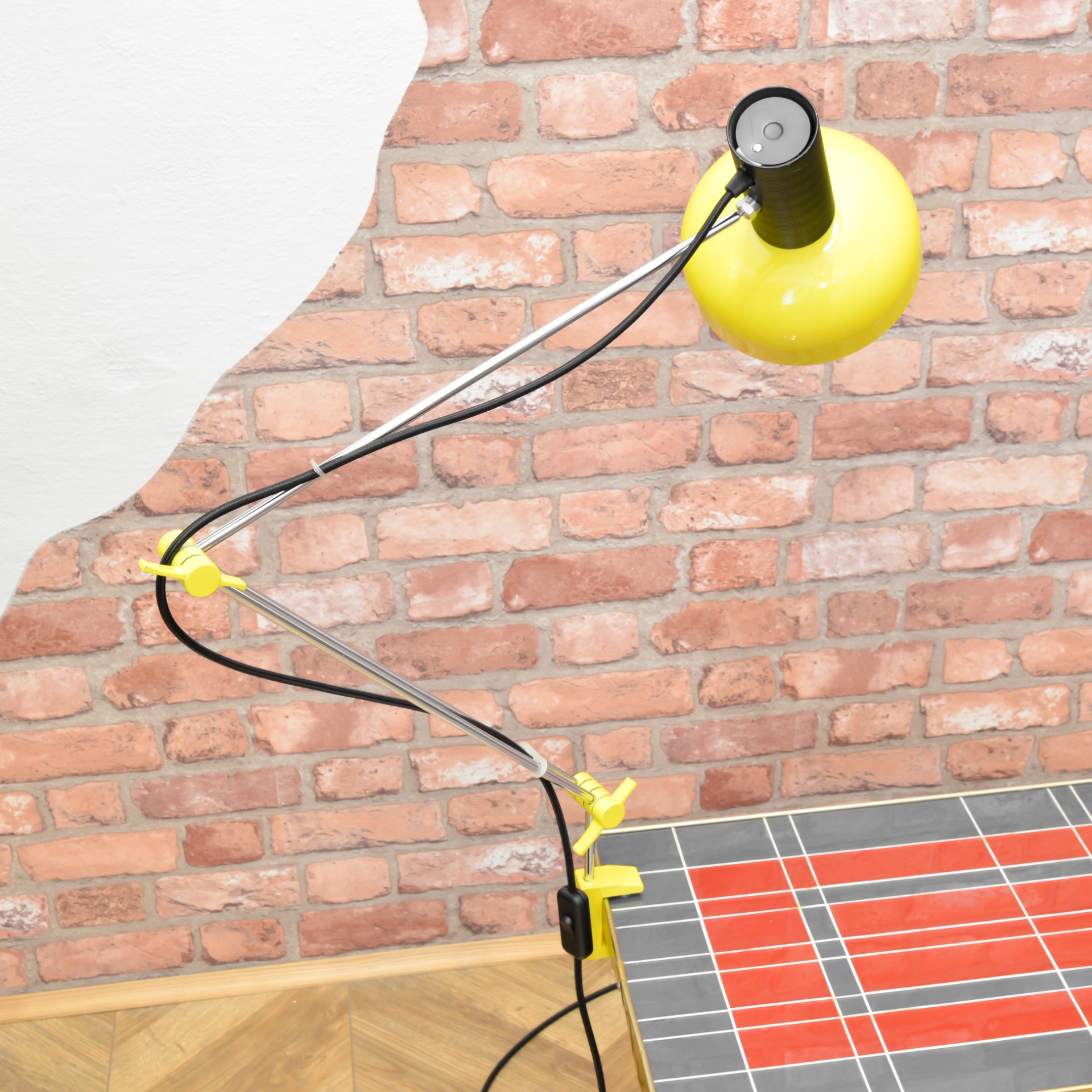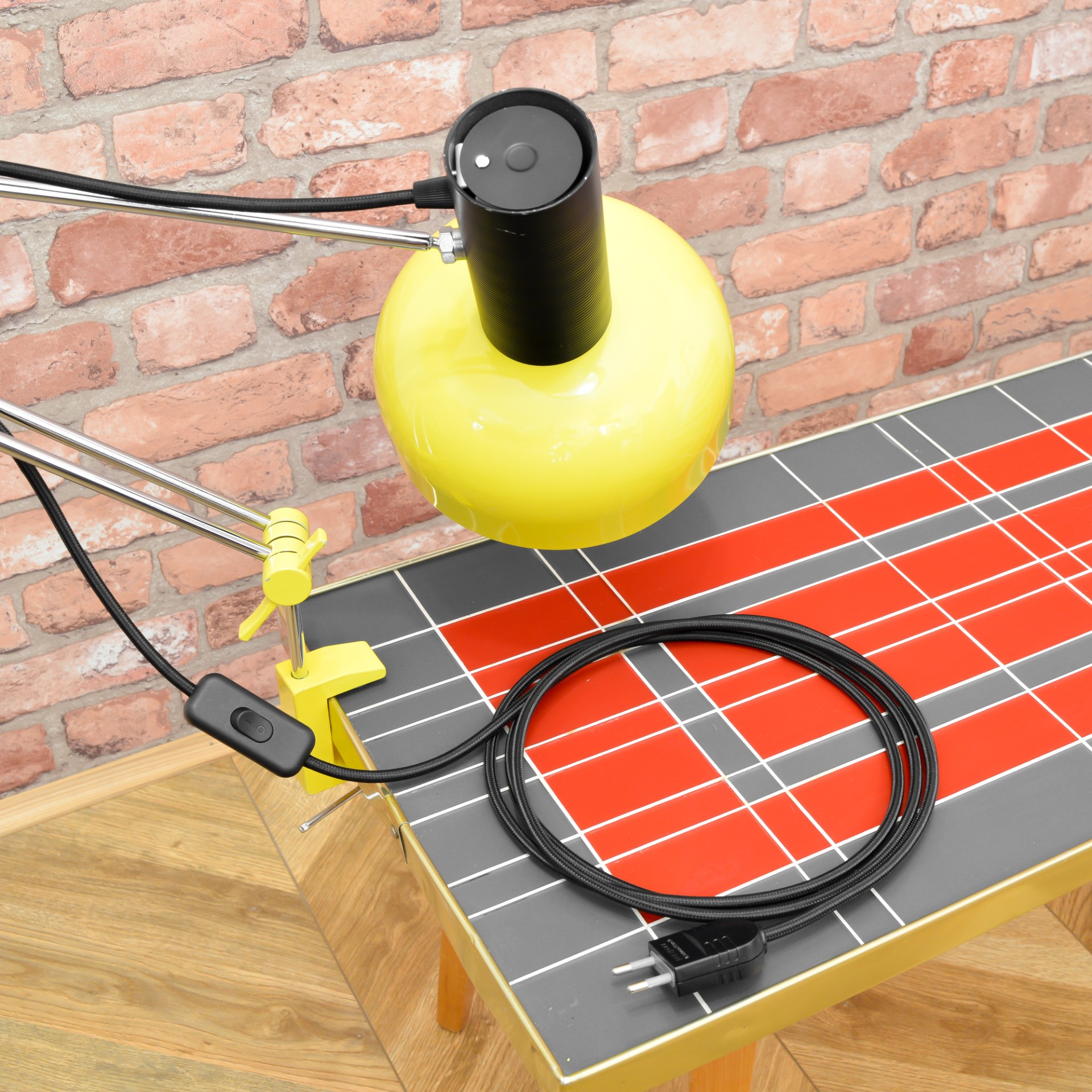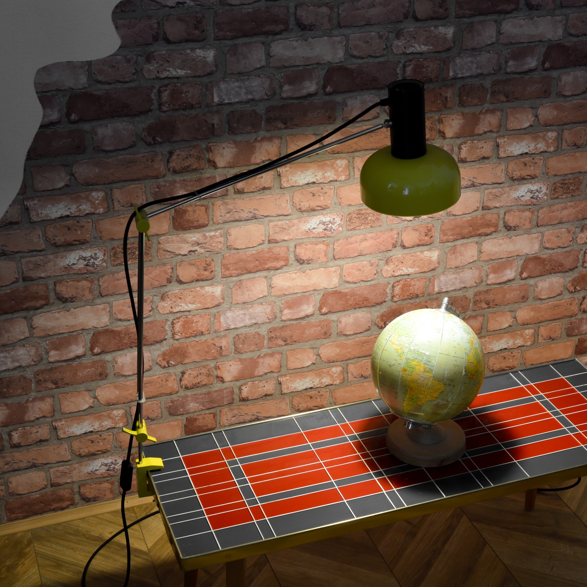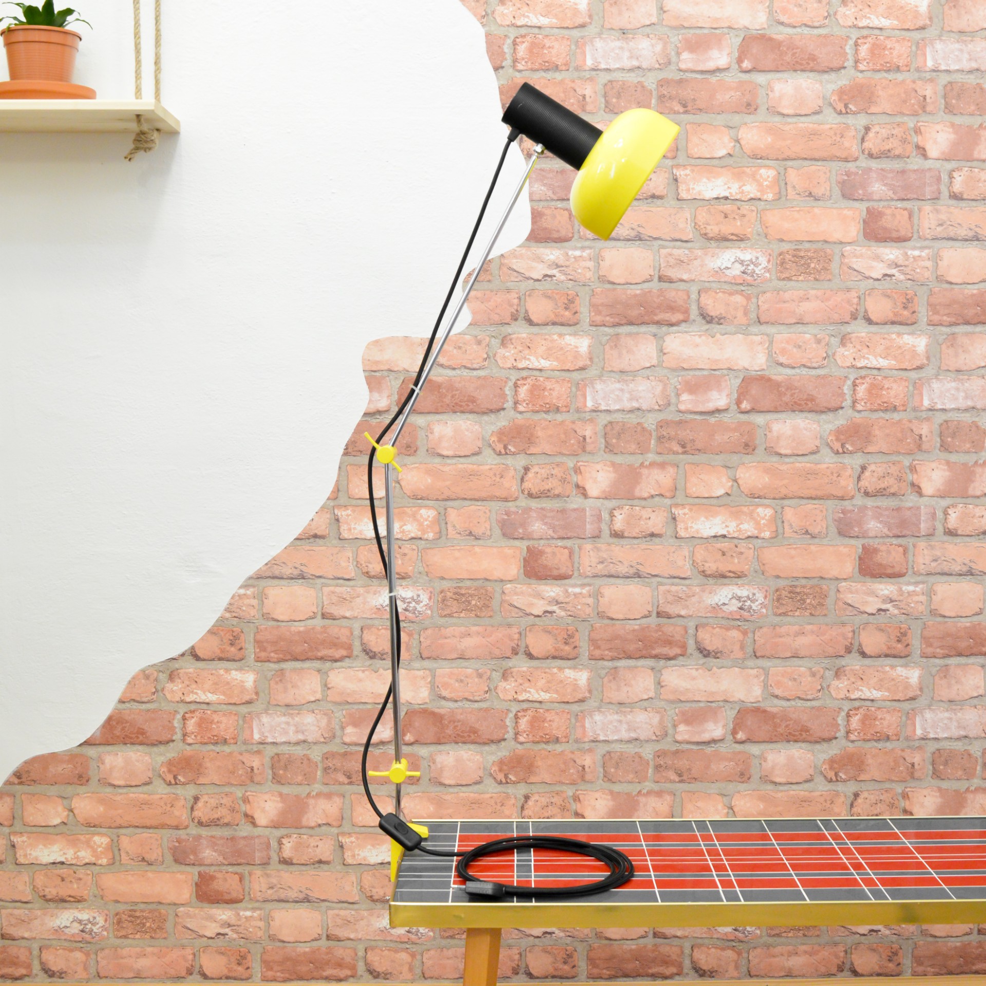 Elegantní kloubová lampa s připevněním na stůl od československého podniku NAPAKO. Vyrobená pravděpodobně v 70. letech, podle návrhu Josefa Hůrky. Jednoduché oblé tvary a kontrast barev jsou hlavní znaky, kterými lampa zaujme na první pohled. Výšku a natočení lampy lze jednoduše upravovat ve všech směrech díky sofistikovaně umístěným kloubům. Konstrukce lampy je celá kvalitně zpracována z pevného kovu. Pro podtržení kontrastu barev a ozvláštnění lampy jsem zvolil textilní kabel v černé barvě a černé komponenty.