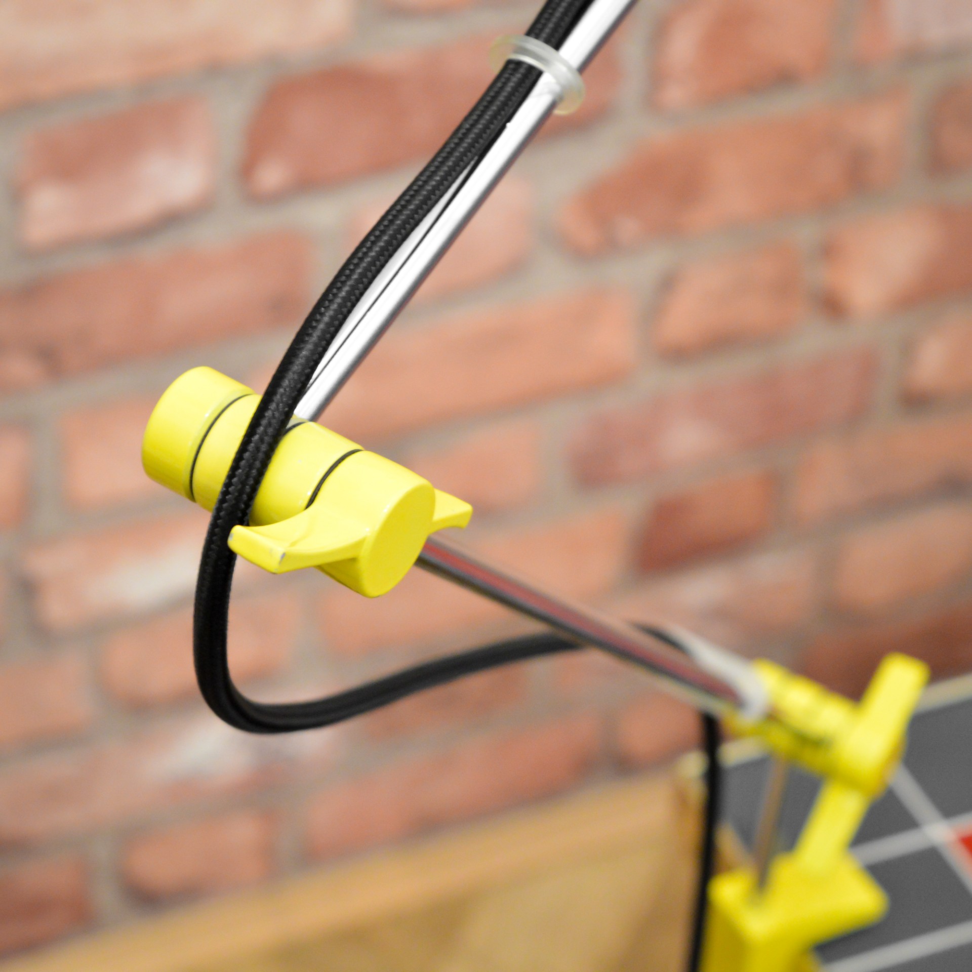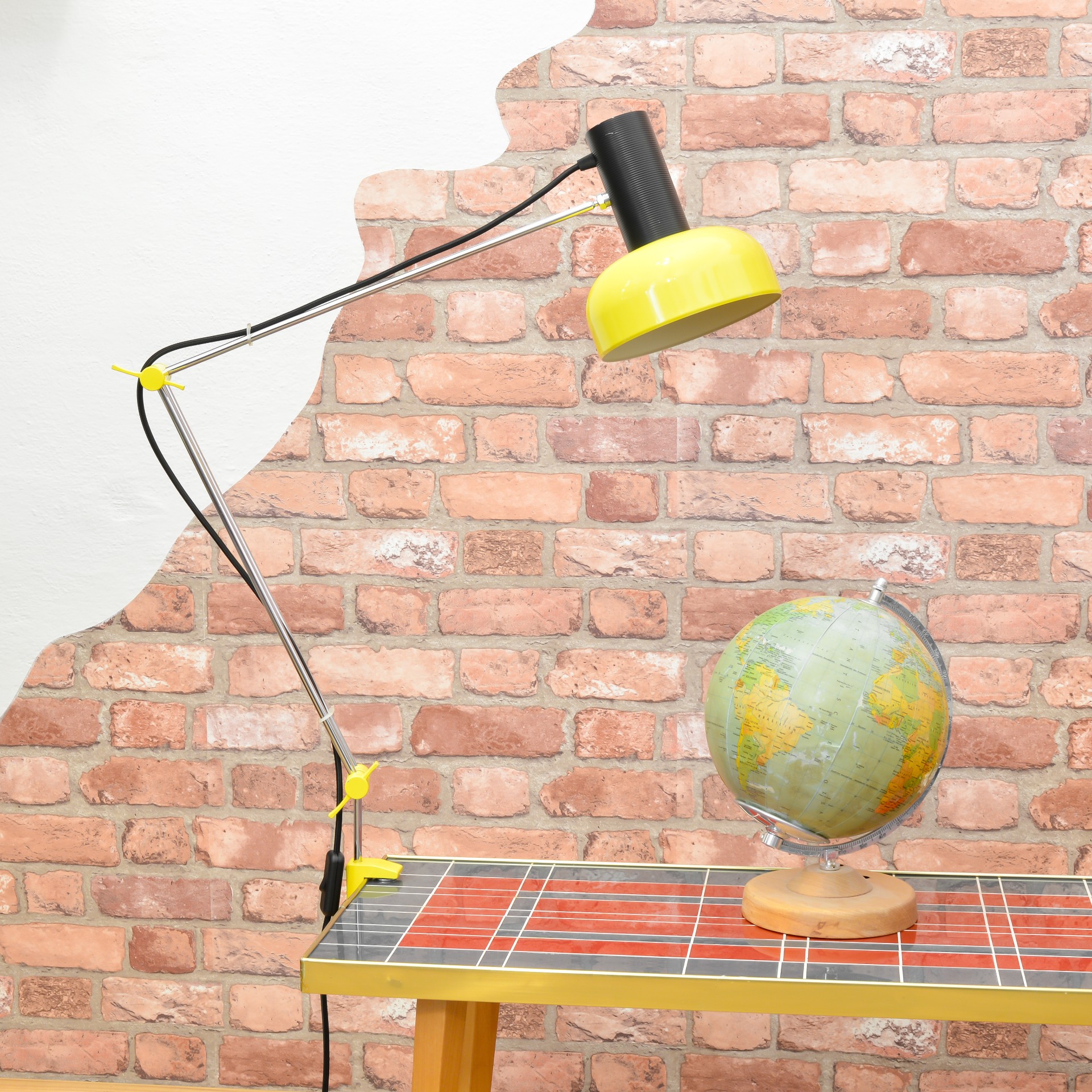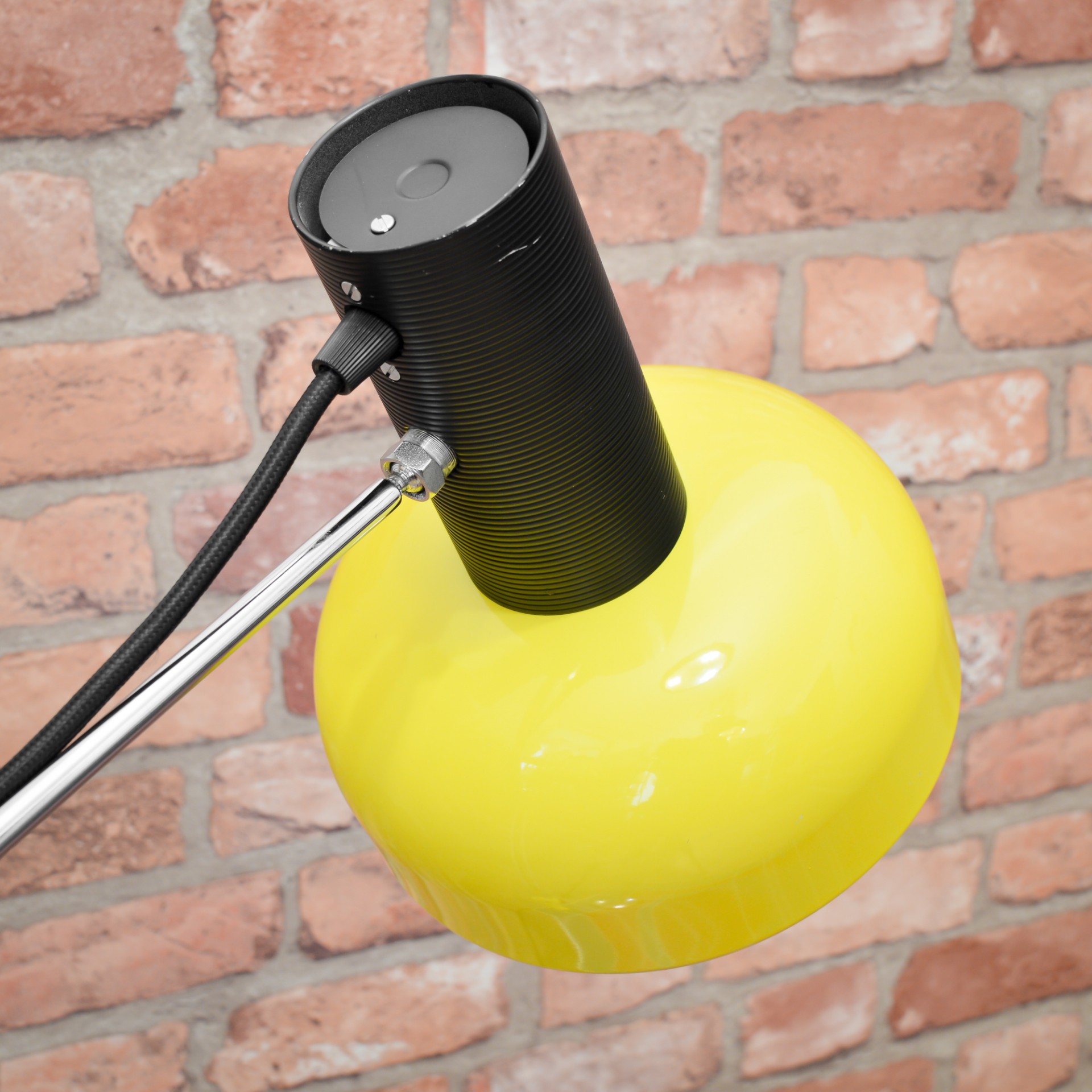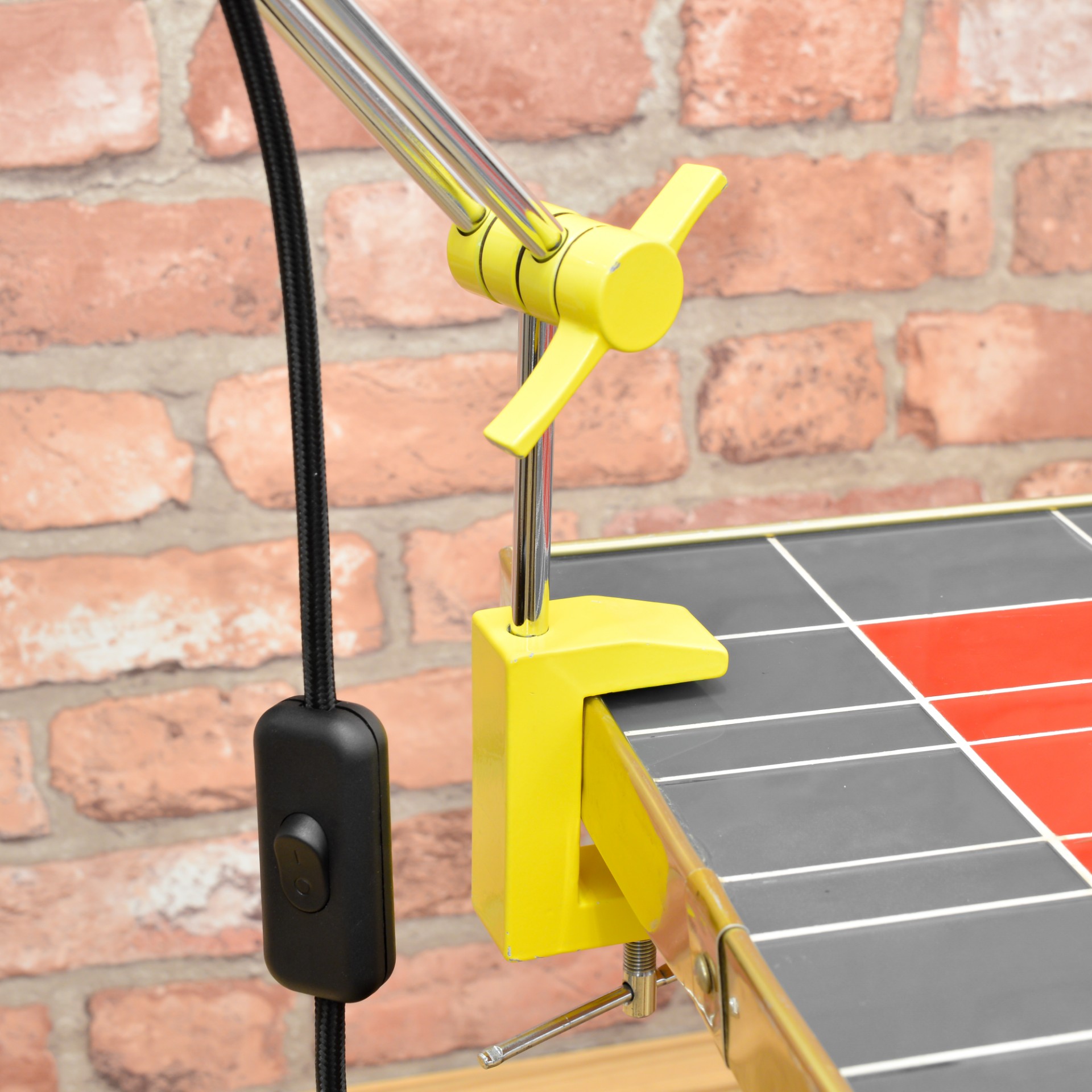 Elegantní kloubová lampa s připevněním na stůl od československého podniku NAPAKO. Vyrobená pravděpodobně v 70. letech, podle návrhu Josefa Hůrky. Jednoduché oblé tvary a kontrast barev jsou hlavní znaky, kterými lampa zaujme na první pohled. Výšku a natočení lampy lze jednoduše upravovat ve všech směrech díky sofistikovaně umístěným kloubům. Konstrukce lampy je celá kvalitně zpracována z pevného kovu. Pro podtržení kontrastu barev a ozvláštnění lampy jsem zvolil textilní kabel v černé barvě a černé komponenty.